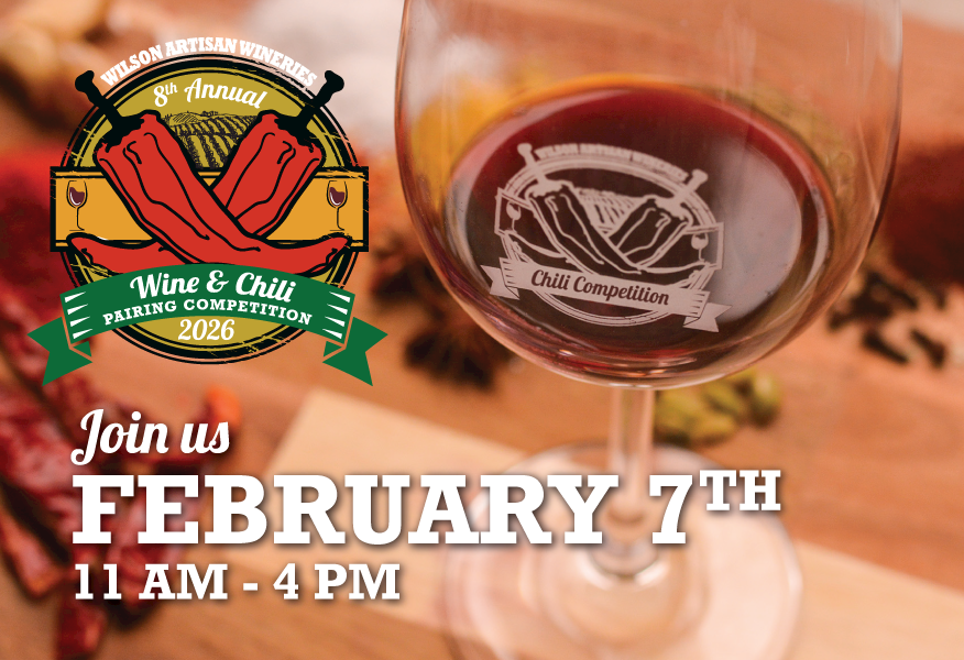 We invite you to visit each of our wineries on Saturday, February 7 for our 8th Annual Wine & Chili Pairing Competition! Each participating winery will work with a local chef to create a chili recipe perfectly paired to one of their favorite wines. Guests will receive a commemorative wine glass to use for their visit to each winery to judge the wine which has the best wine and chili pairing. Votes will be collected at the end of the day. Each guest who drops in a completed ballot with at least 4 stamps is entered to win one of four prize packages.